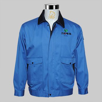正面圖片:此款力神電池公司工作服,采用亮藍色與黑色撞色,識別度高,塑造良好的企業形象。42,76,64,65,94,122,123,59