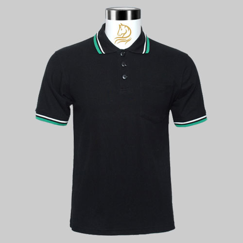 DSC_0147副本-T恤正面圖:正常翻領,領邊拼色。大眾汽車工作服袖口袖口:螺紋拼色袖口
